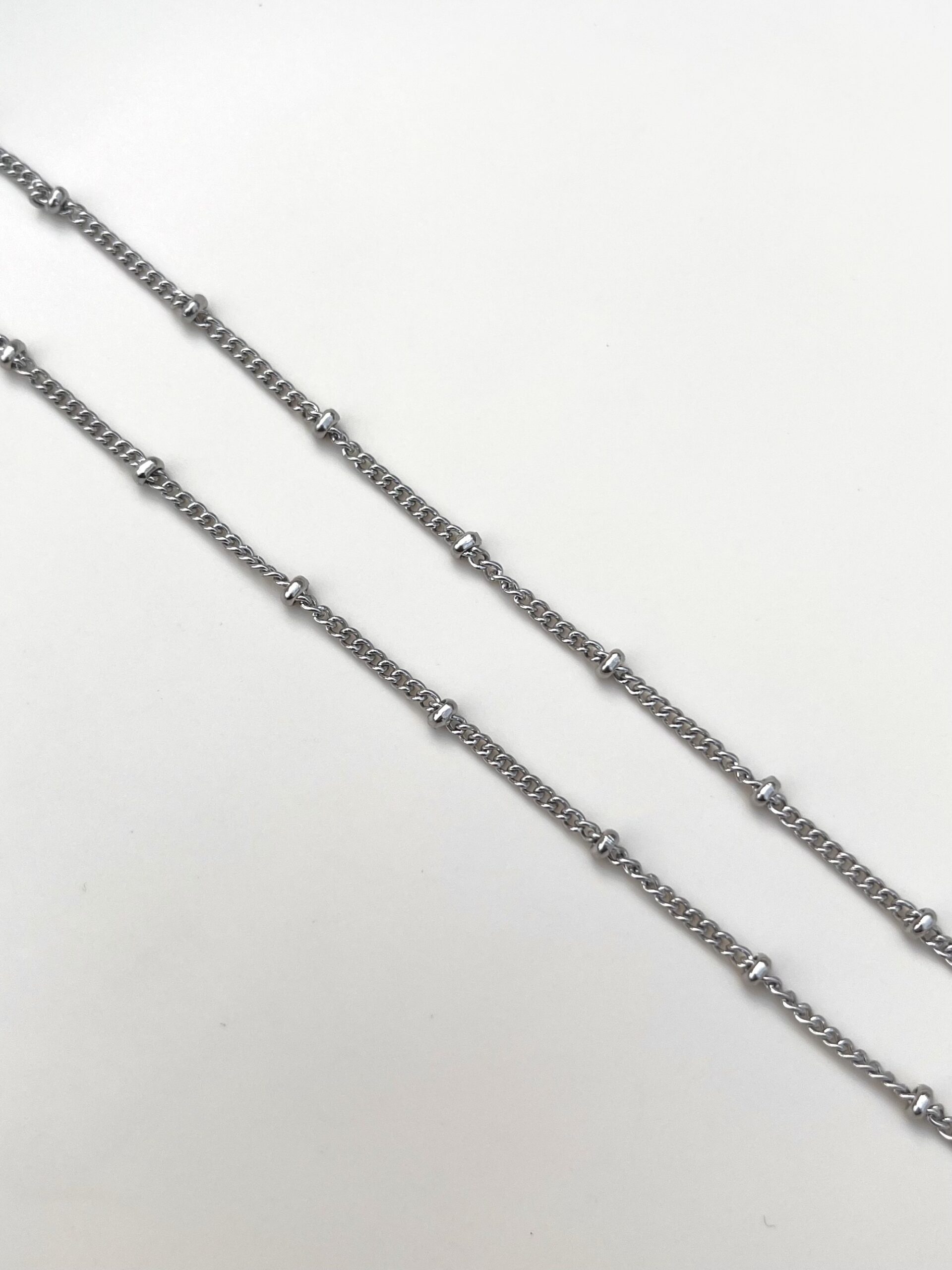 De lengte van de ketting is 40 cm en hij wordt geleverd met een ringetje en een (ronde) sluiting.