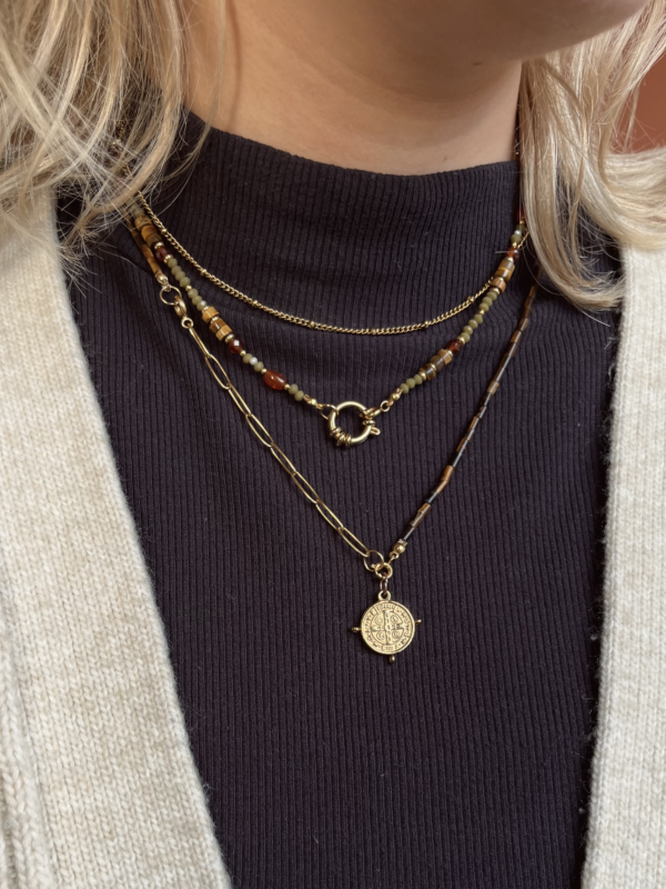 | Materiaal | Combinatie van verschillende kralen met afwerkingen van (gold-plated) roestvrij staal (RVS) |