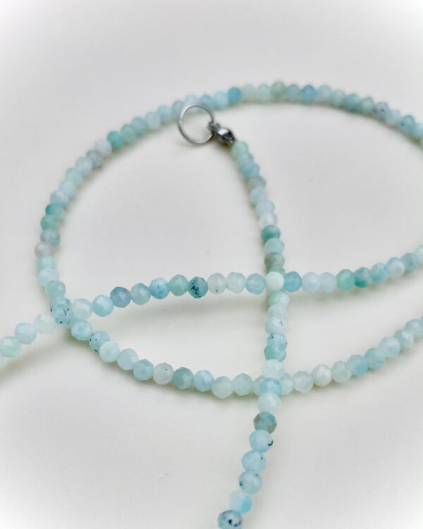 Deze prachtige lichtblauwe ketting combineert perfect met bijvoorbeeld een mooie spijkerbroek of -jasje. Hij is verkrijgbaar in twee maten; een kleine kraal voor een mooie subtiele ketting en een wat grotere kraal voor een echte statement ketting. Voor welke ga jij?