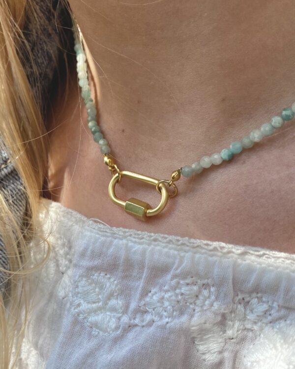 | Materiaal | Aquamarijn met (gold-plated) roestvrij stalen (RVS) afwerkingen |