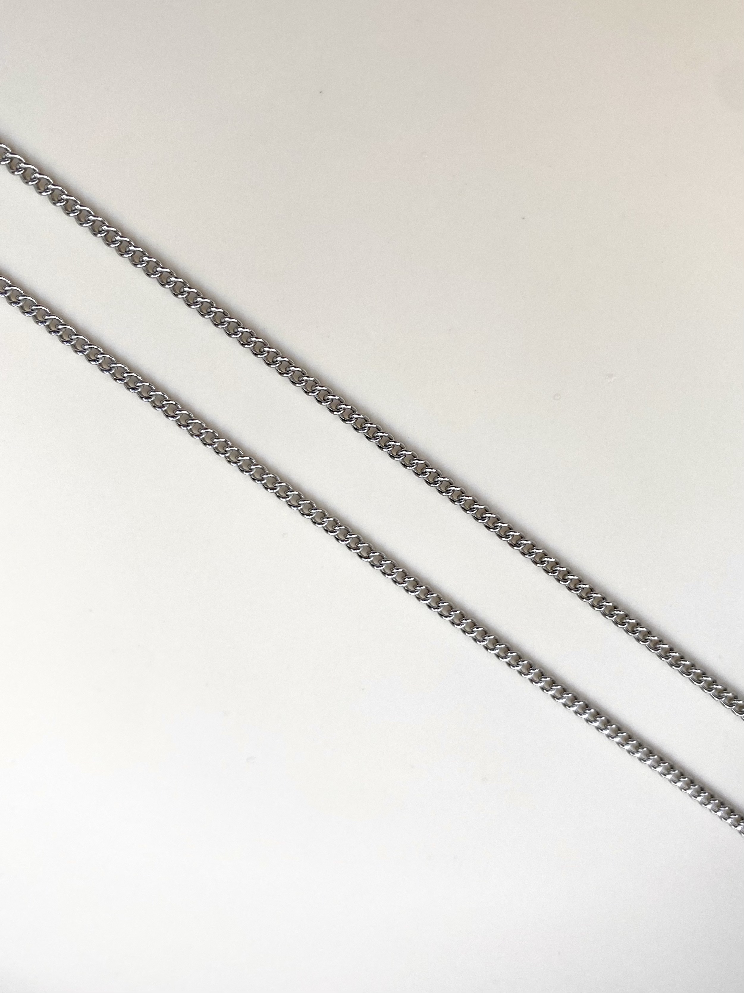De lengte van de ketting is 47 cm en hij wordt geleverd met een ringetje en een (karabijn) sluiting.